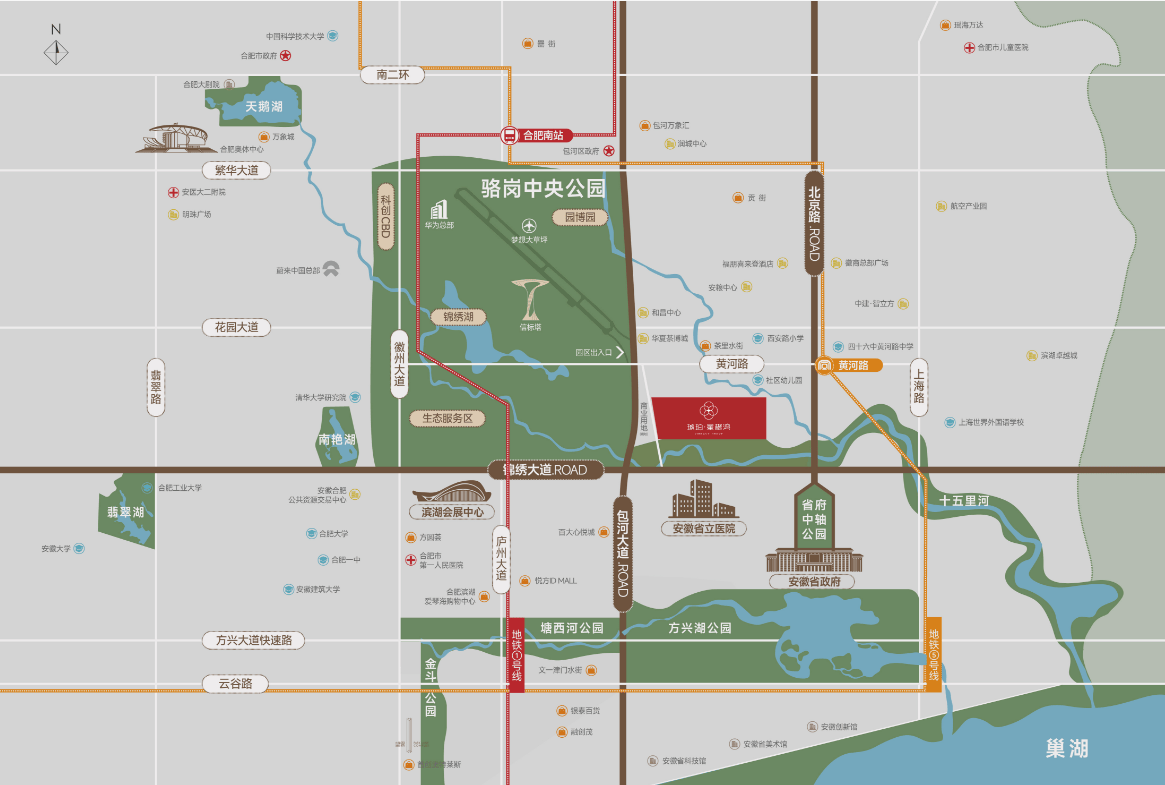 上高速(跨城上班族):从项目出发,5 分钟上包河大道高架,10 分钟中转合肥绕城高速(包河大道入口),便利前去南京、上海、武汉等城市。
